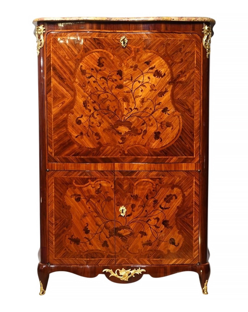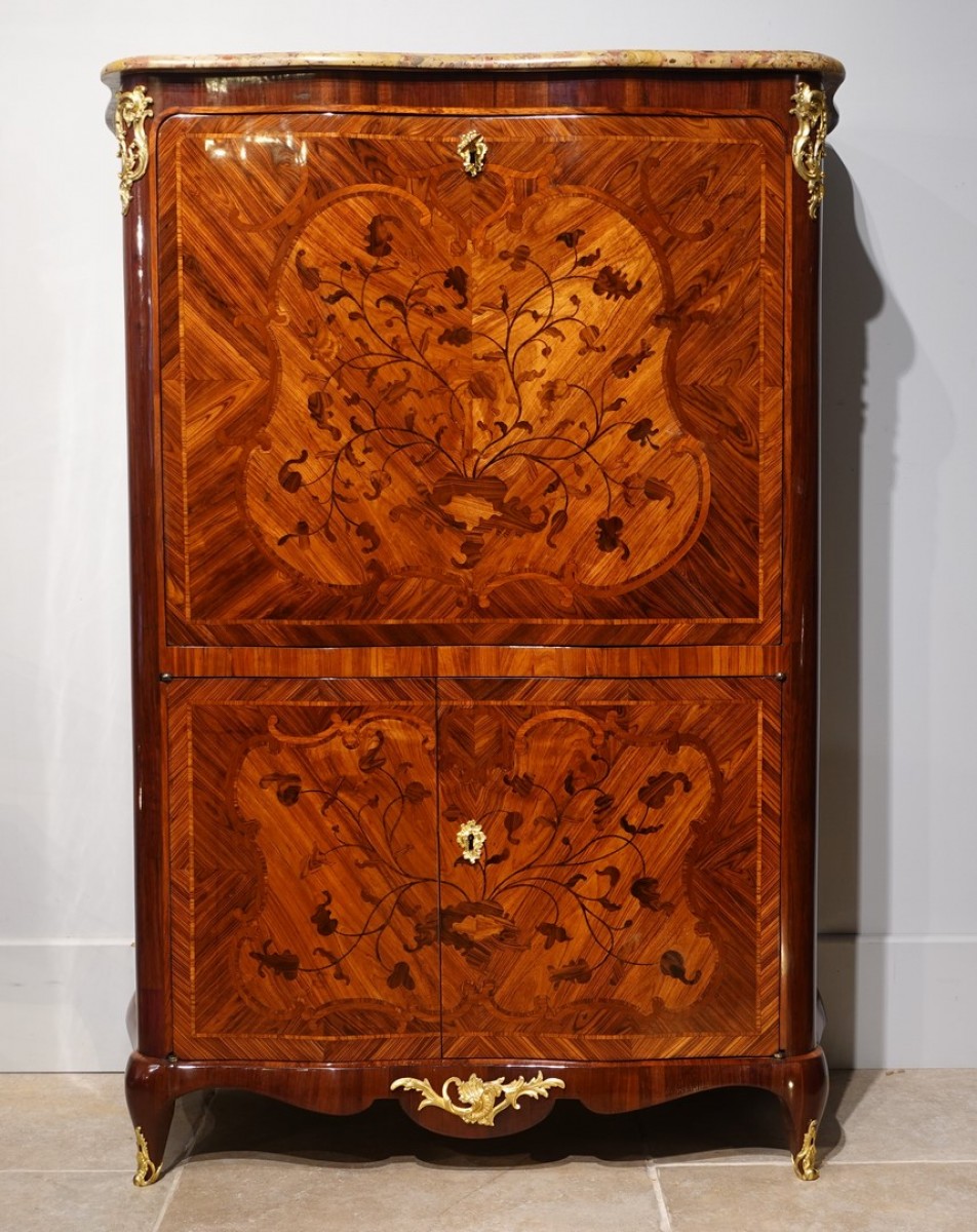 A very fine Louis XV period secretary desk, double-bent on the front and also curved on the sides, stamped P. Roussel for Pierre Roussel (1723-1782), the renowned Parisian cabinetmaker who became a Master on August 21, 1745.