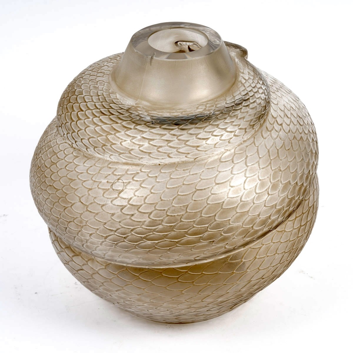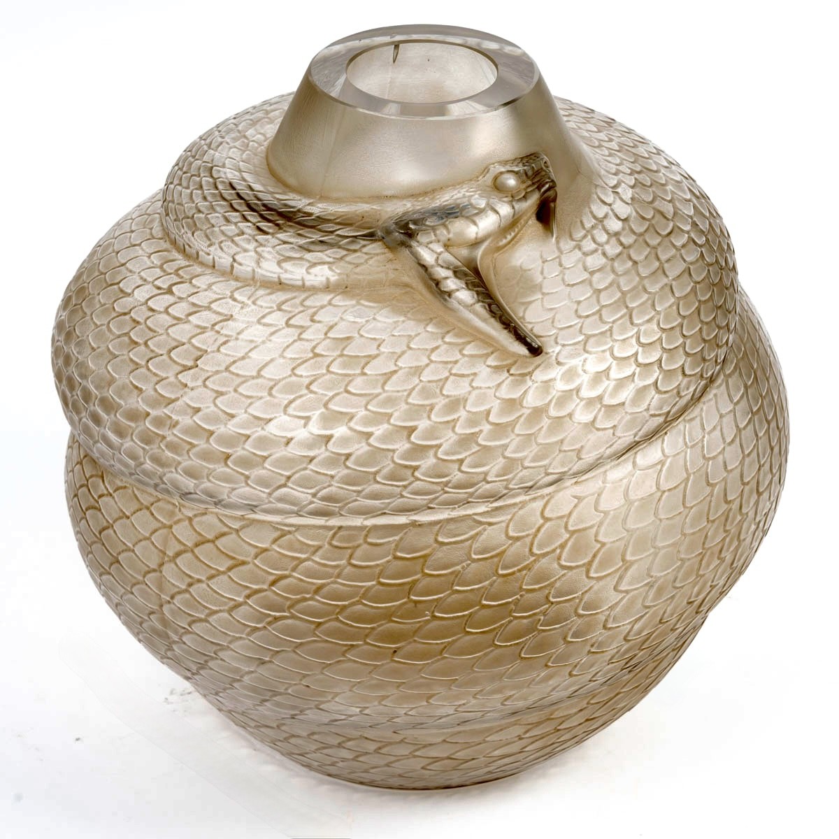 Vase "Serpent" (Snake) vase in white glass with a sepia patina, created by René Lalique in 1924.