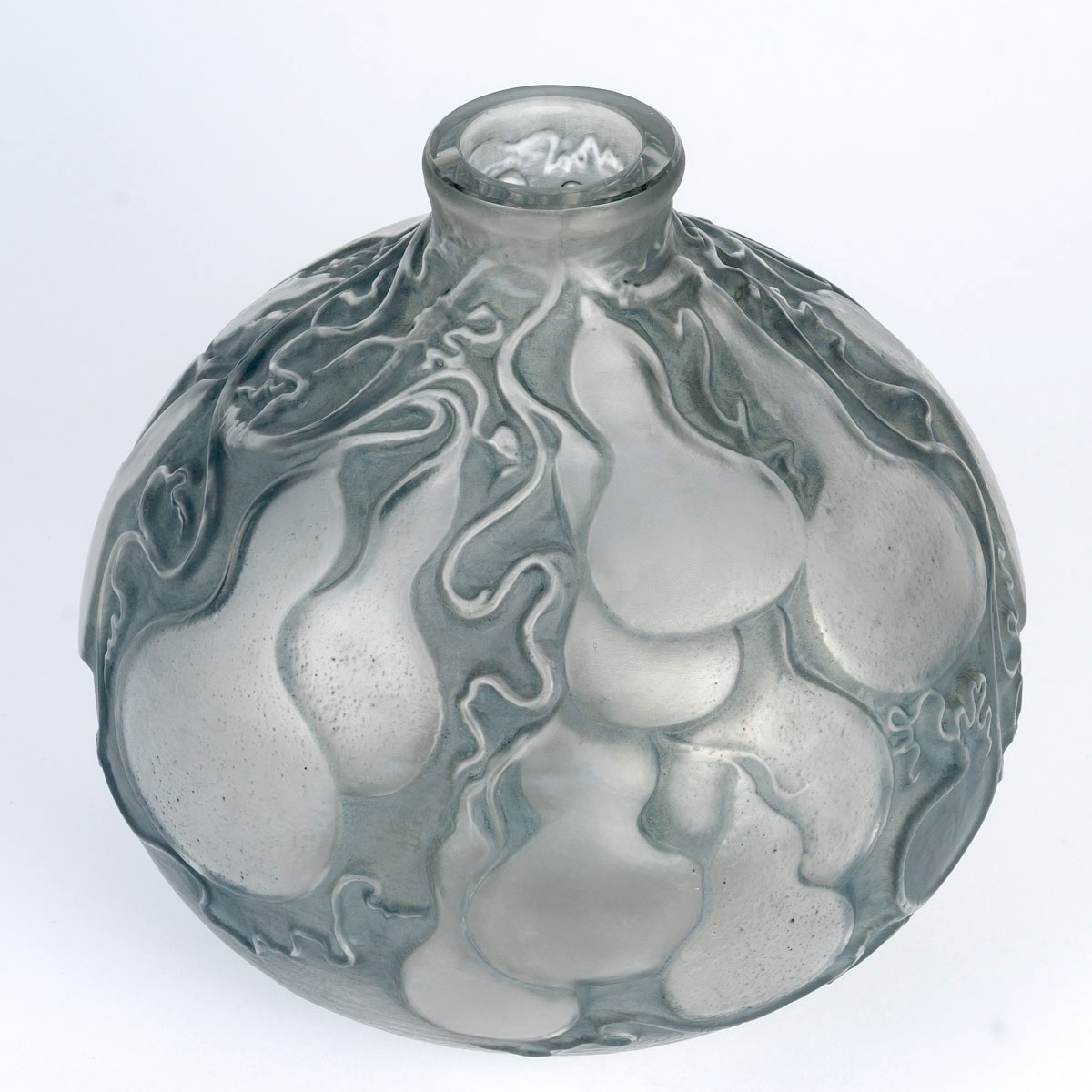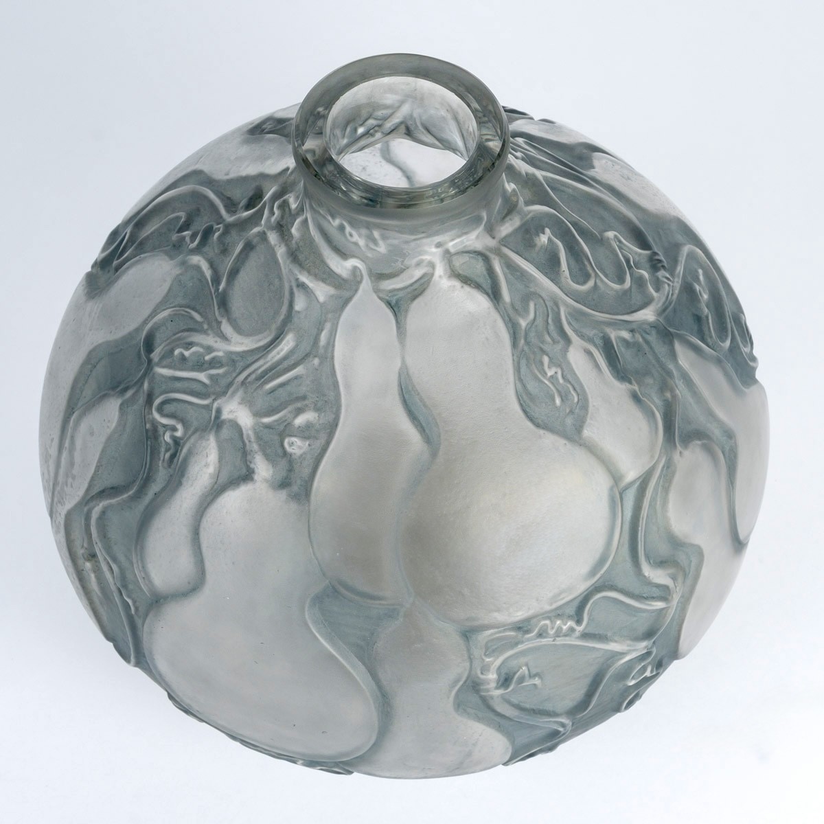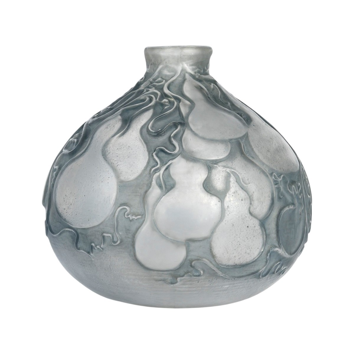 Vase "Courges" made in glas with blue grey patina by René Lalique in 1914.