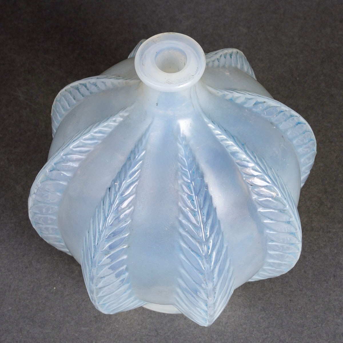 Vase "Malines" made in cased opalescent glass with blue patina by René Lalique in 1924.