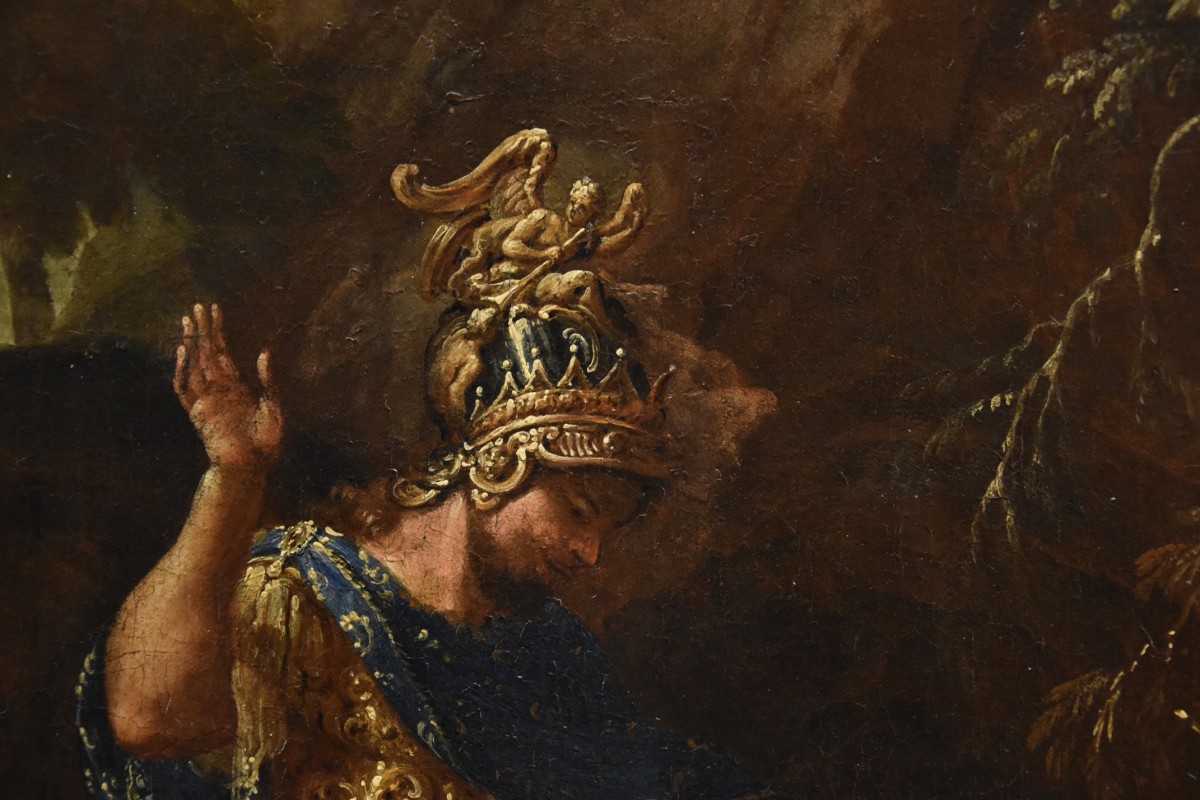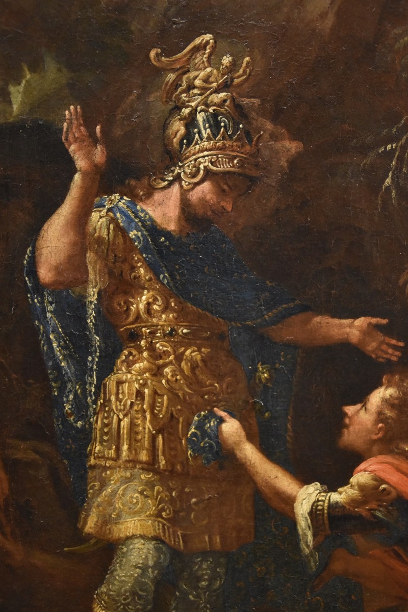 Highly captivating due to its intriguing subject matter, this beautiful painting draws inspiration from the tales of conquest of the great Alexander the Great, depicted as he grants clemency to a general of the defeated Persian army.