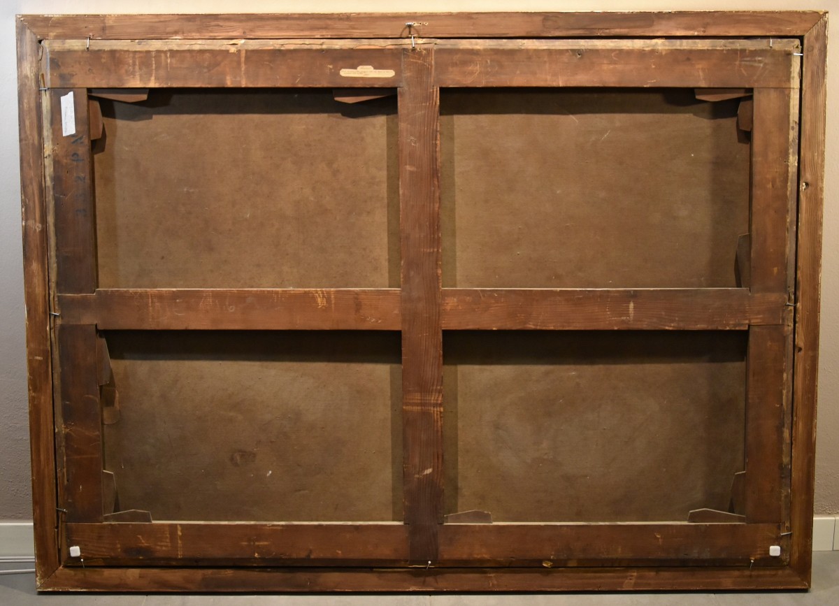 The true poetry of the painting lies in the mastery the artist displays in the descriptive details, evoking in the viewer a sense of profound admiration, captivated by the virtuosity of the technique, the profusion of details, and the exceptional richness of the rendering of the uniform details, executed with great skill. Good condition. Re-framed.