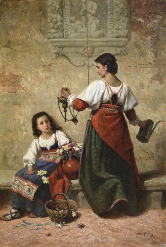 The career of FINES is best known for its peasant scenes most of the time inspired by Britain and more rarely by Italy in the 1860s as an example of our painting.