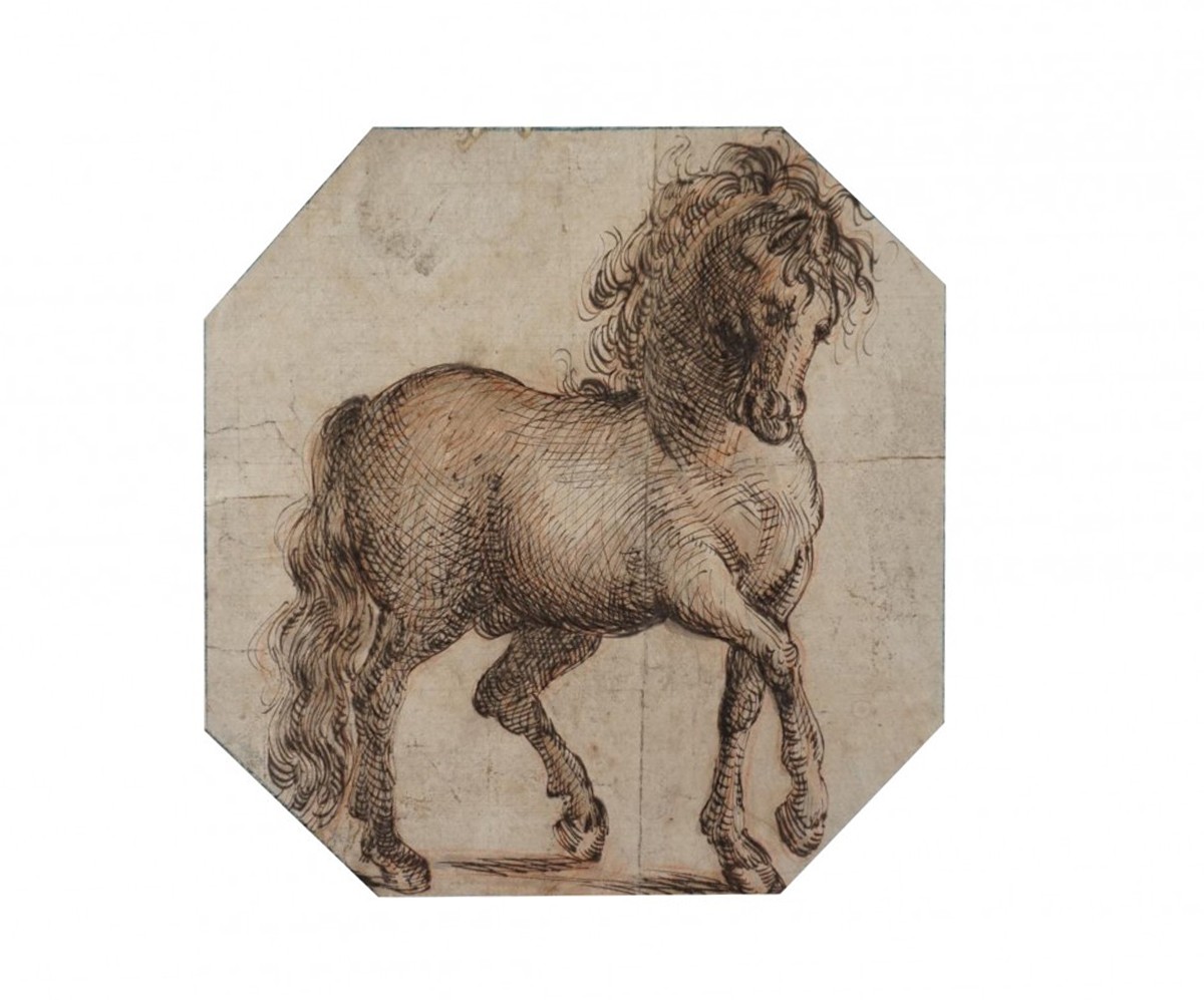 Beautiful and powerful figure of a horse, on a sheet of octogonal shape. Unframed, it is mounted on an old passepartout.