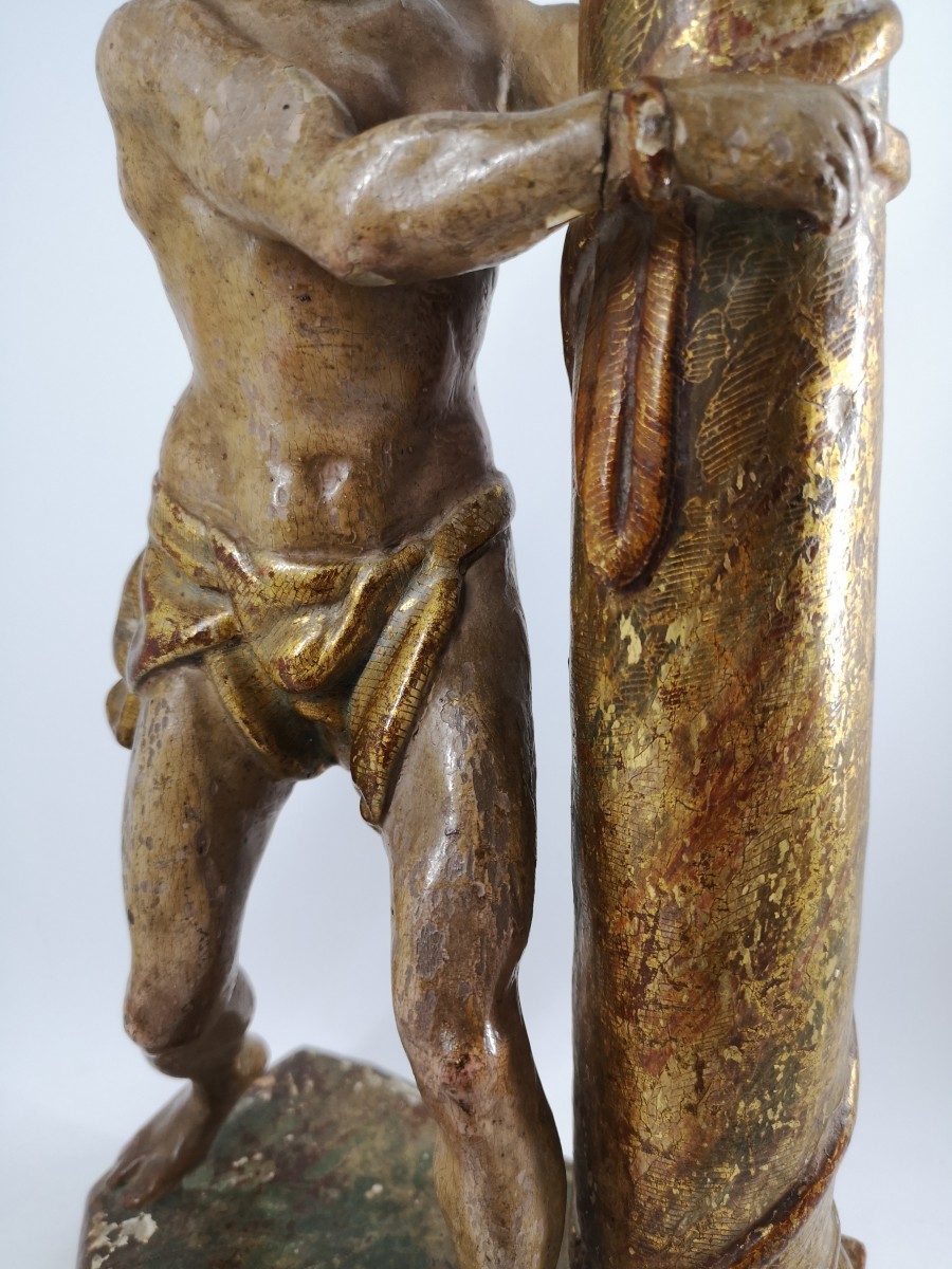 Renaissance figure of Christ at the Column sculpted in wood, with rich original polychrome decoration, certainly made by a Spanish artist working in the kingdom of Castile during the second half of the XVIth century.
