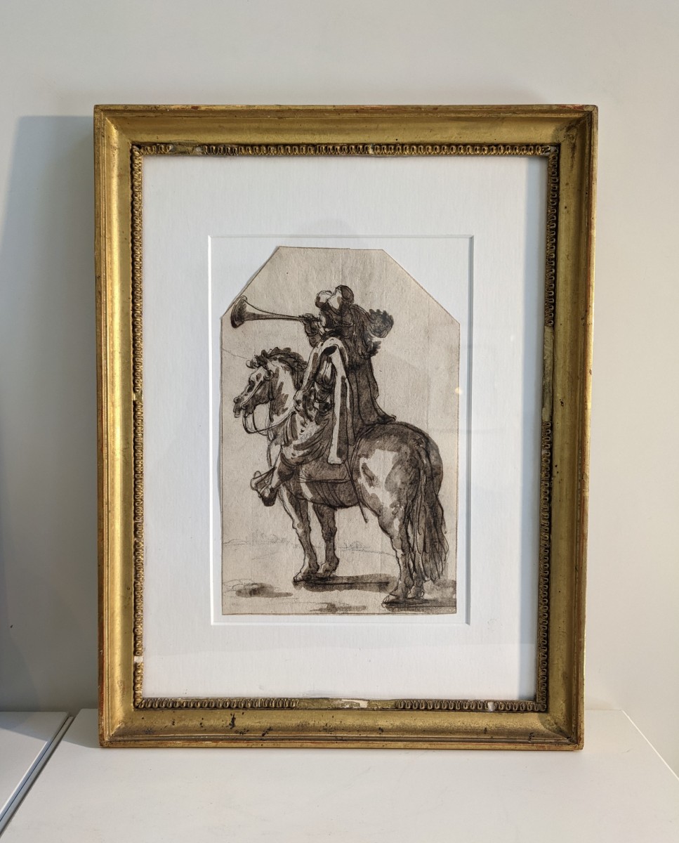 Good condition, mounted with passe-partout and a gilt wood frame.
