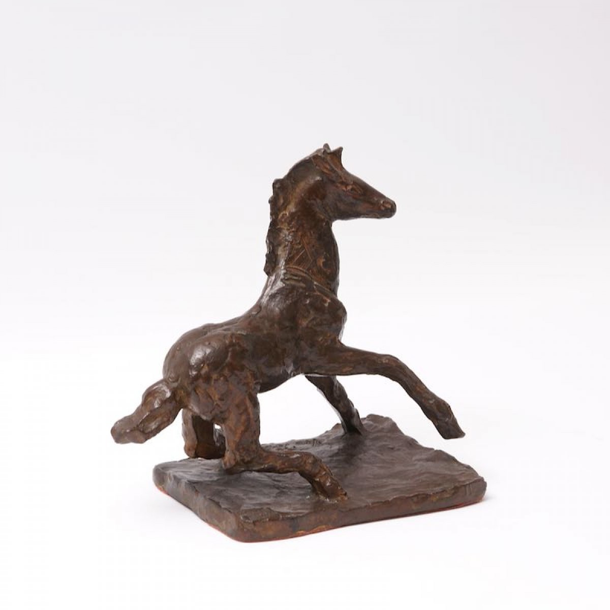 Bronze horse by Swiss sculptor Pierre Blanc, numbered 1/10, cire perdue cast by Pastori Geneva, brown patina, circa 1950