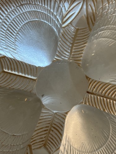 Ceiling Fixture Light Chandelier "Coquilles" made in frosted glass with sepia patina created by René Lalique in 1921.
