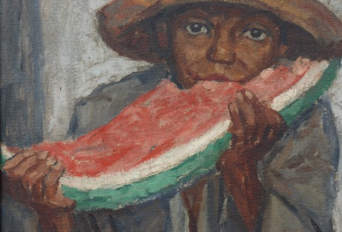 Young Brazilian with a watermelon by Julius Schmischke (1890-1945). Dimensions frame : width : 64.5cm height : 74.3 cm
